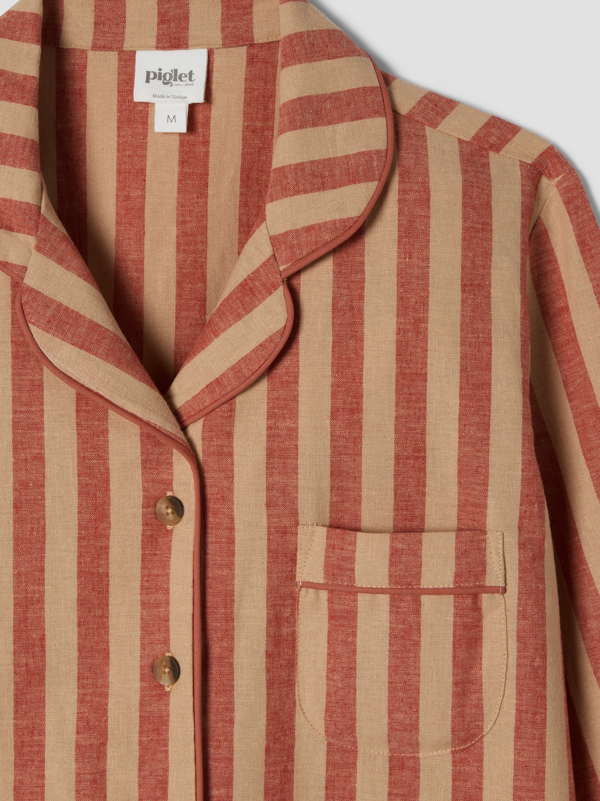 Sandstone Red Pembroke Stripe Linen Blend Pajama Set