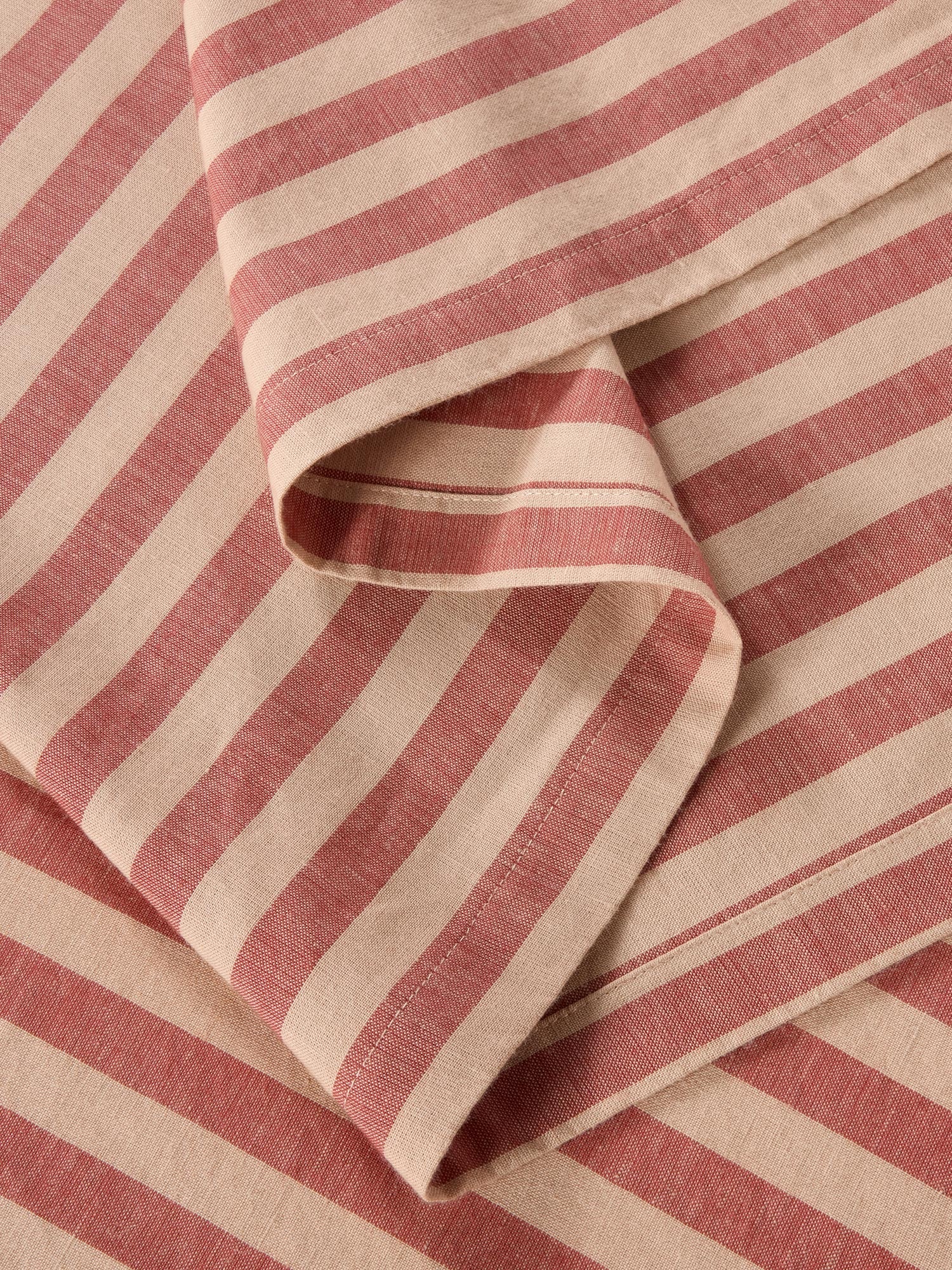 Whether for a weeknight supper or a feast with friends, our bold Sandstone Red Pembroke Stripe linen blend table runner brings a generous helping of joy to the dinner table. Woven from European flax and long staple cotton, our table linens have a relaxed look and feel with a super-soft finish. Complete your dining table look with the rest of our linen tableware range, including tablecloths and napkins.