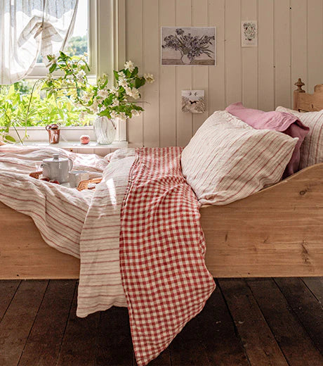 Our linen flat sheets are perfect as a lightweight cover for warmer months or for adding an extra layer if it’s colder. Made in Portugal from 100% European flax, they are naturally breathable and thermo-regulating, so you can sleep well all year round. Inspired by vintage deck chairs, our Sandstone Red Pembroke Stripe will take you right back to summer days spent at the British seaside.