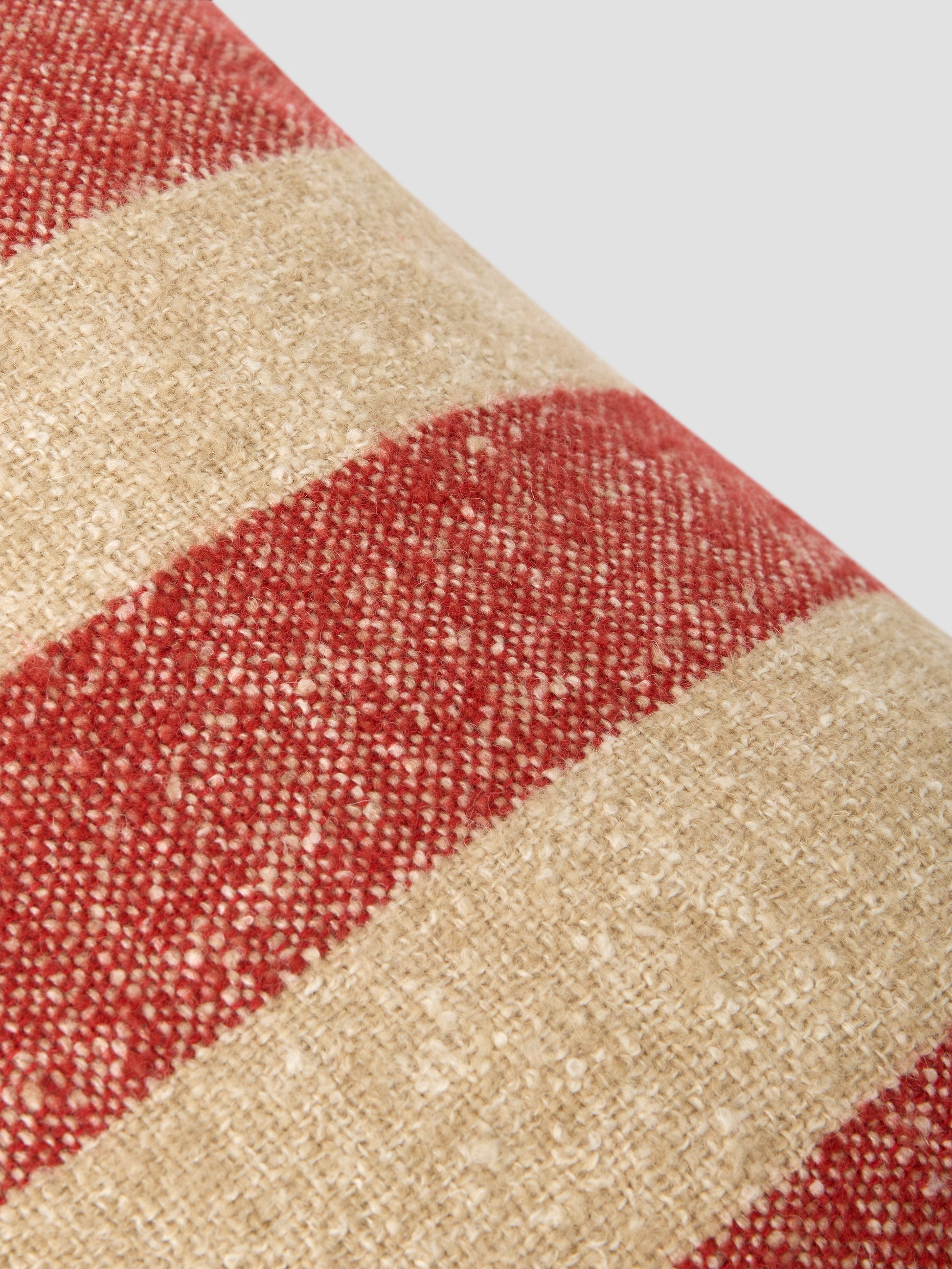 Sandstone Red & Oatmeal Wide Stripe Wool Rectangle Cushion Cover