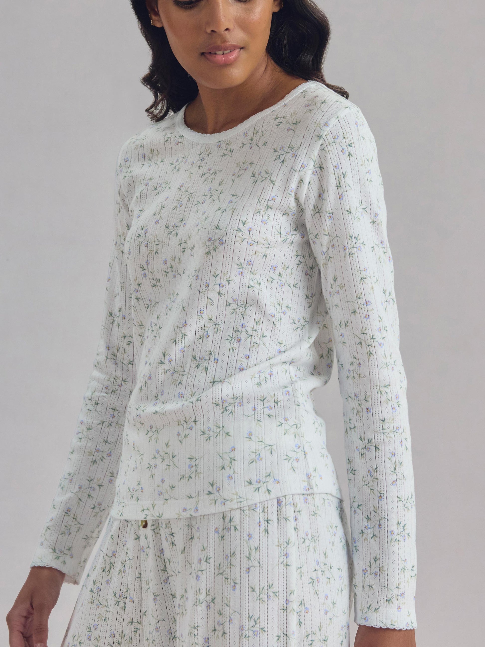 Spring Sprig Pointelle Long Sleeve Top