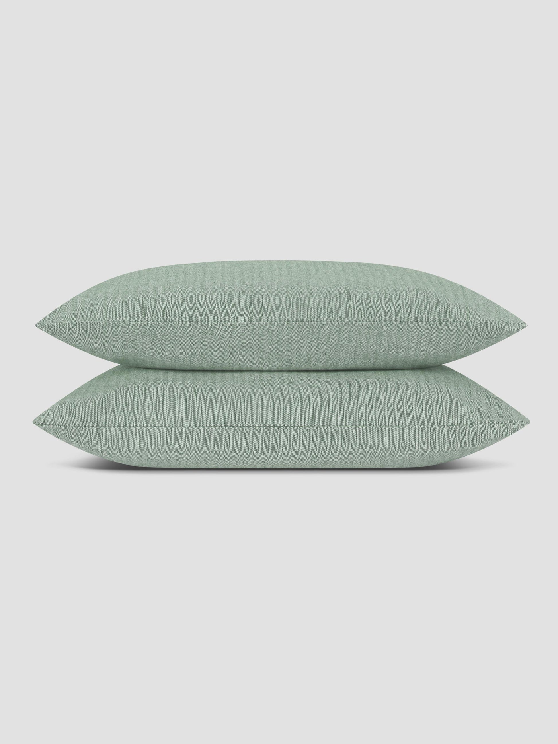 Spruce Green Herringbone Flannel Cotton Pillowcases (Pair)