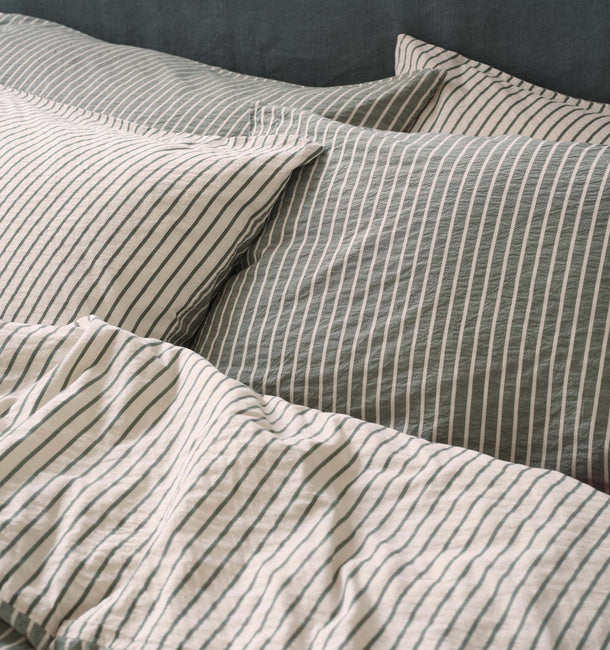 Spruce Green Textured Stripe Cotton Duvet Cover