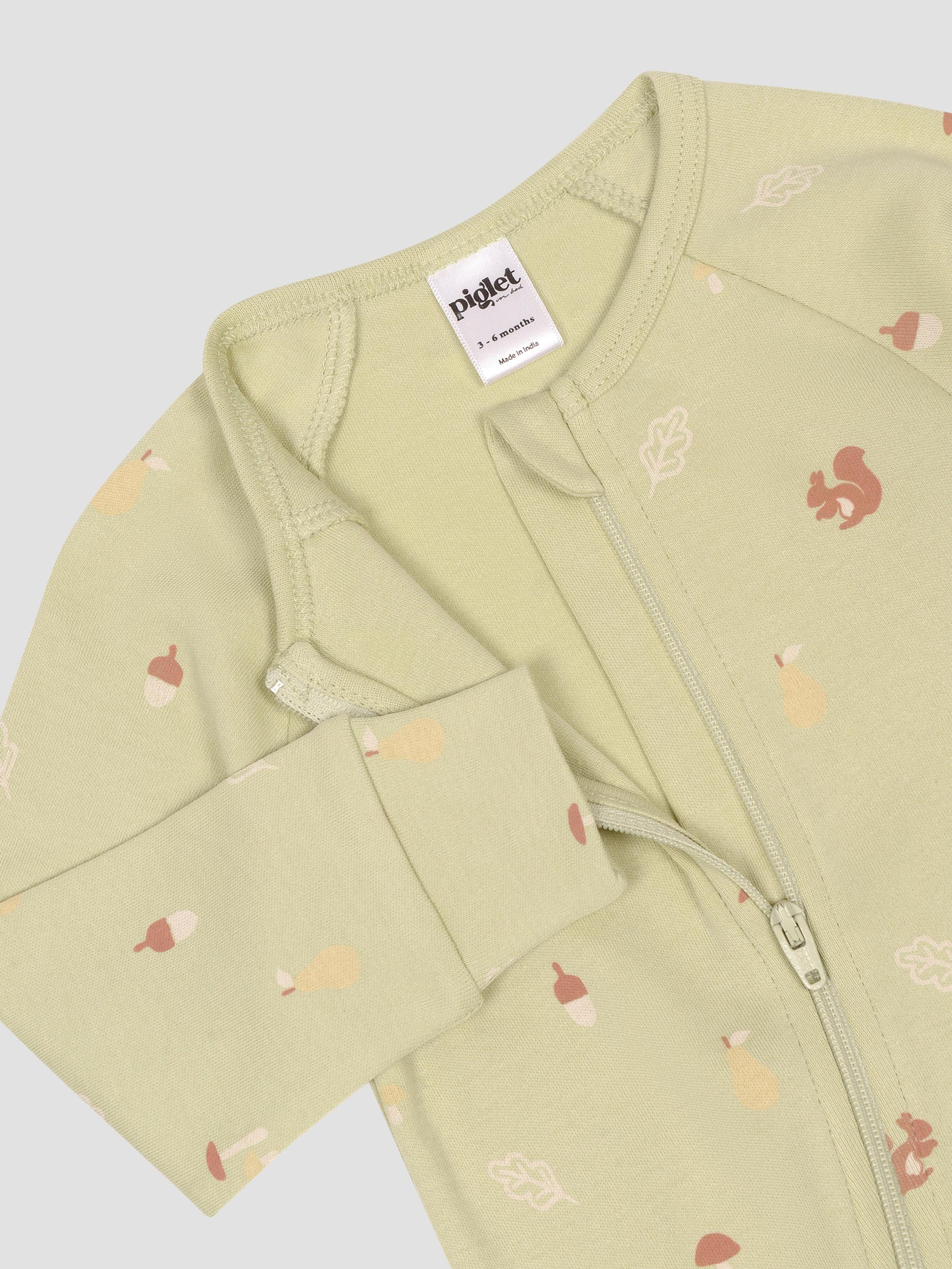 With an all-over whimsical woodland print, our Sweat Pea long sleeve sleepsuit is perfect for little adventurers. Woven from 100% cotton, this super soft and breathable onesie is gentle on even the most sensitive skin. Our baby sleepsuits have integrated feet and feature a zip-up fastening, making changing time that little bit easier.