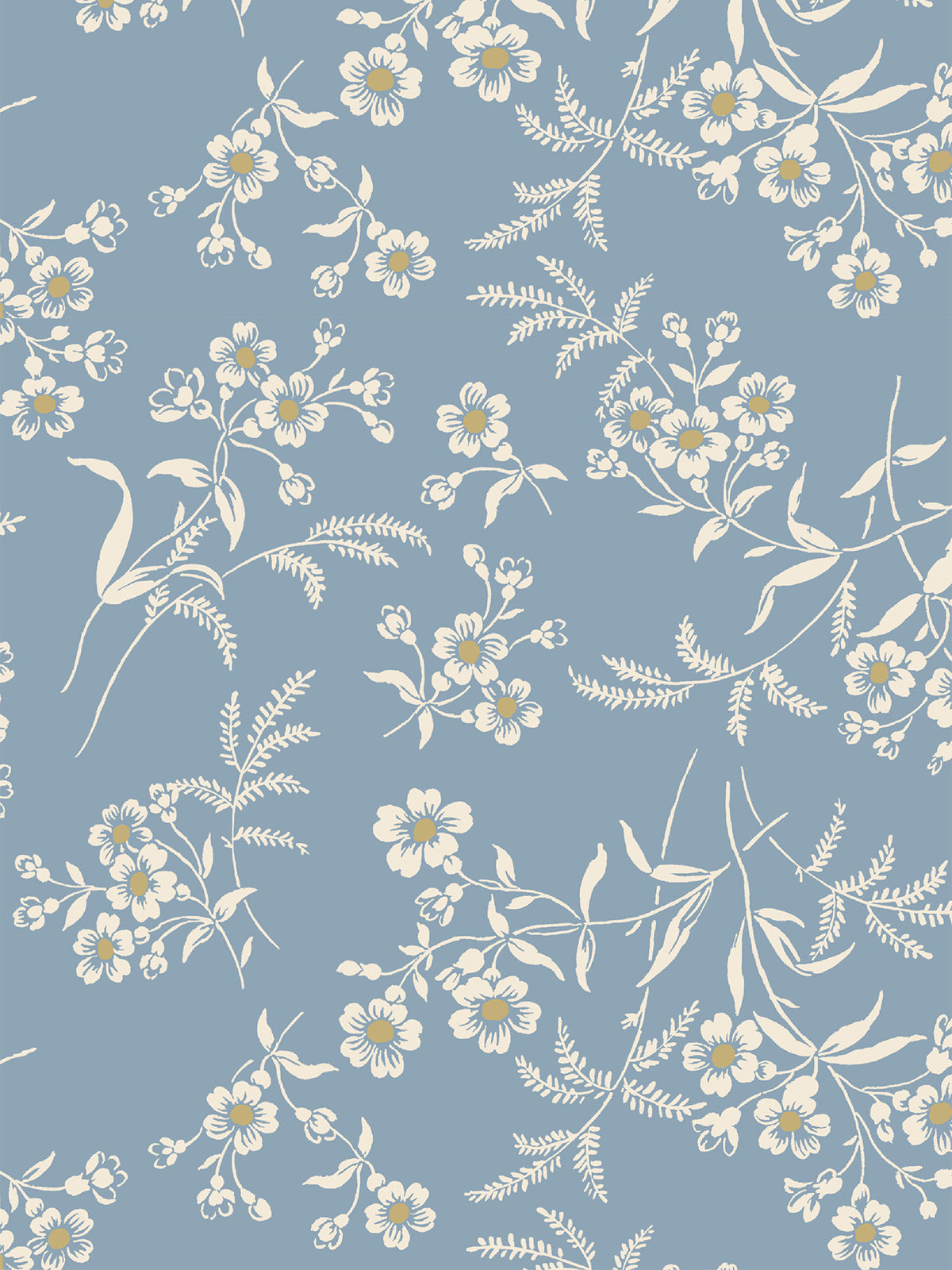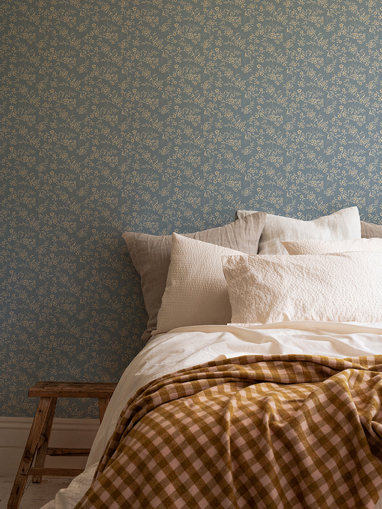 Warm Blue Camille Floral Wallpaper