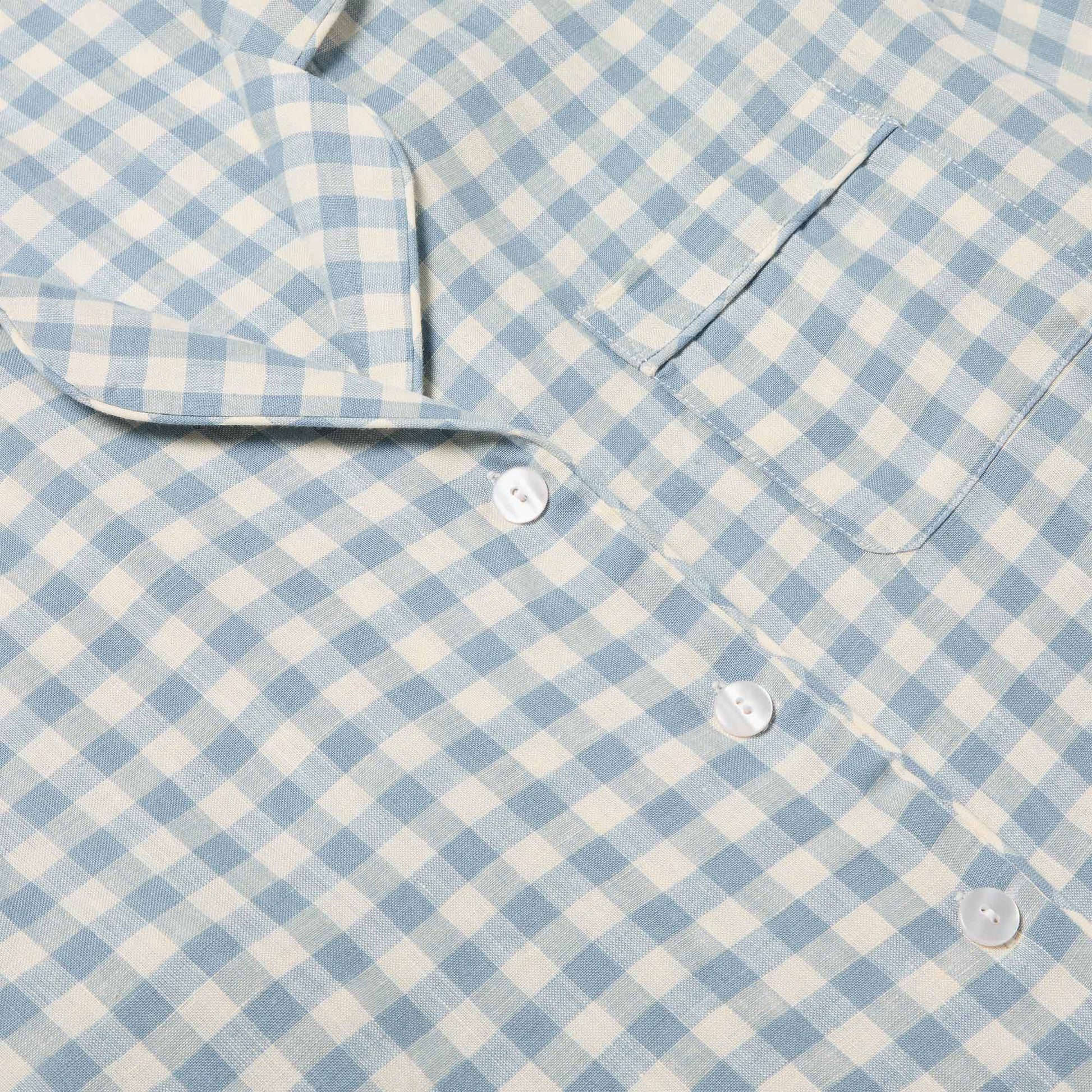 Warm Blue Gingham Linen Pajama Shirt (Top Only)
