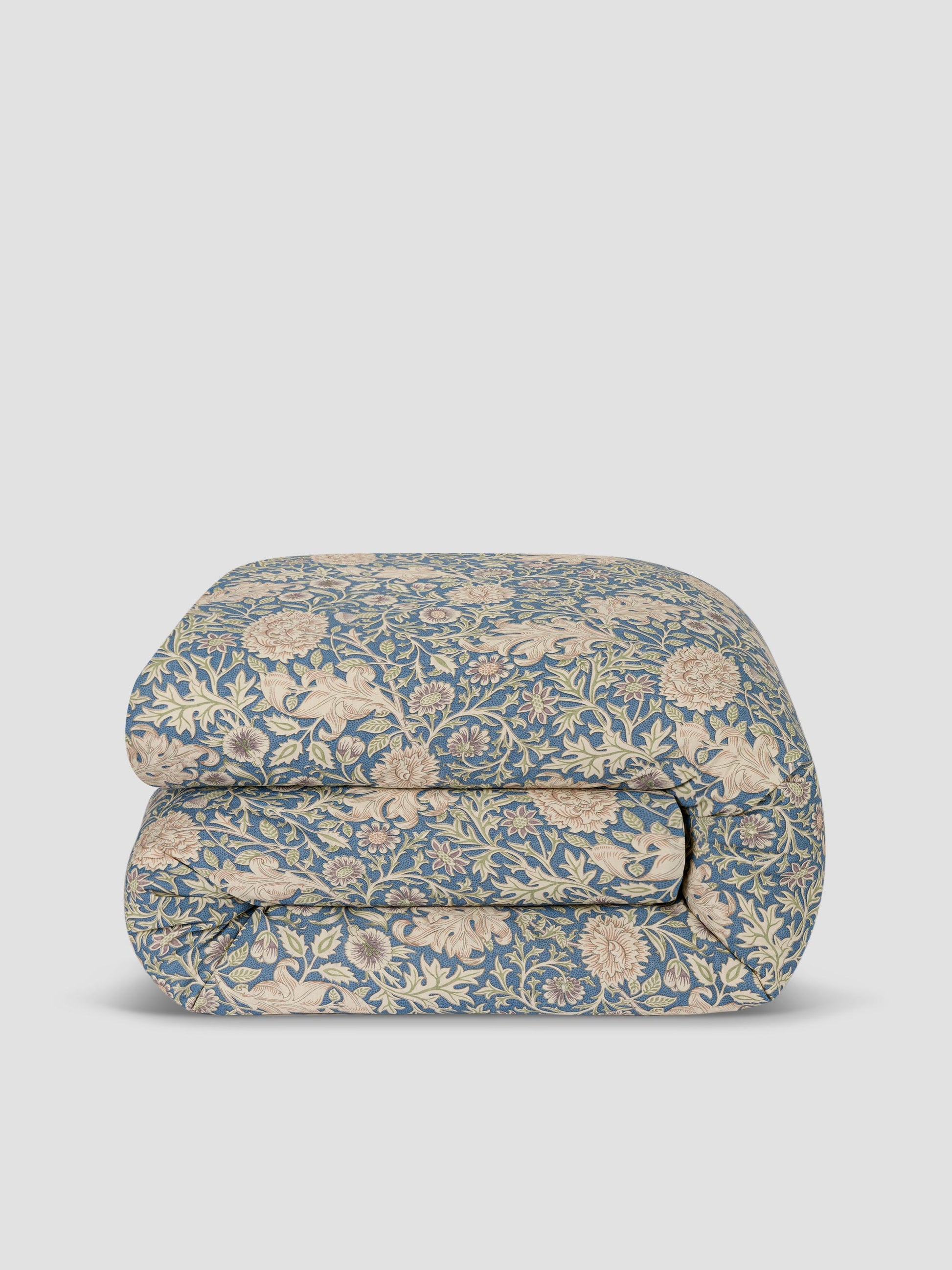 Scrolling acanthus leaves and abundant blooms adorn this Morris & Co. linen blend duvet cover, featuring the much-loved Willow Bough pattern in a rich Webbs Blue hue. Made from only the highest-quality fibers, the breathable fabric combines the effortless look of linen with the softness of cotton. Our linen blend duvet covers are finished with coconut shell button fastenings and feature handy inside corner ties to stop your duvet from slipping.