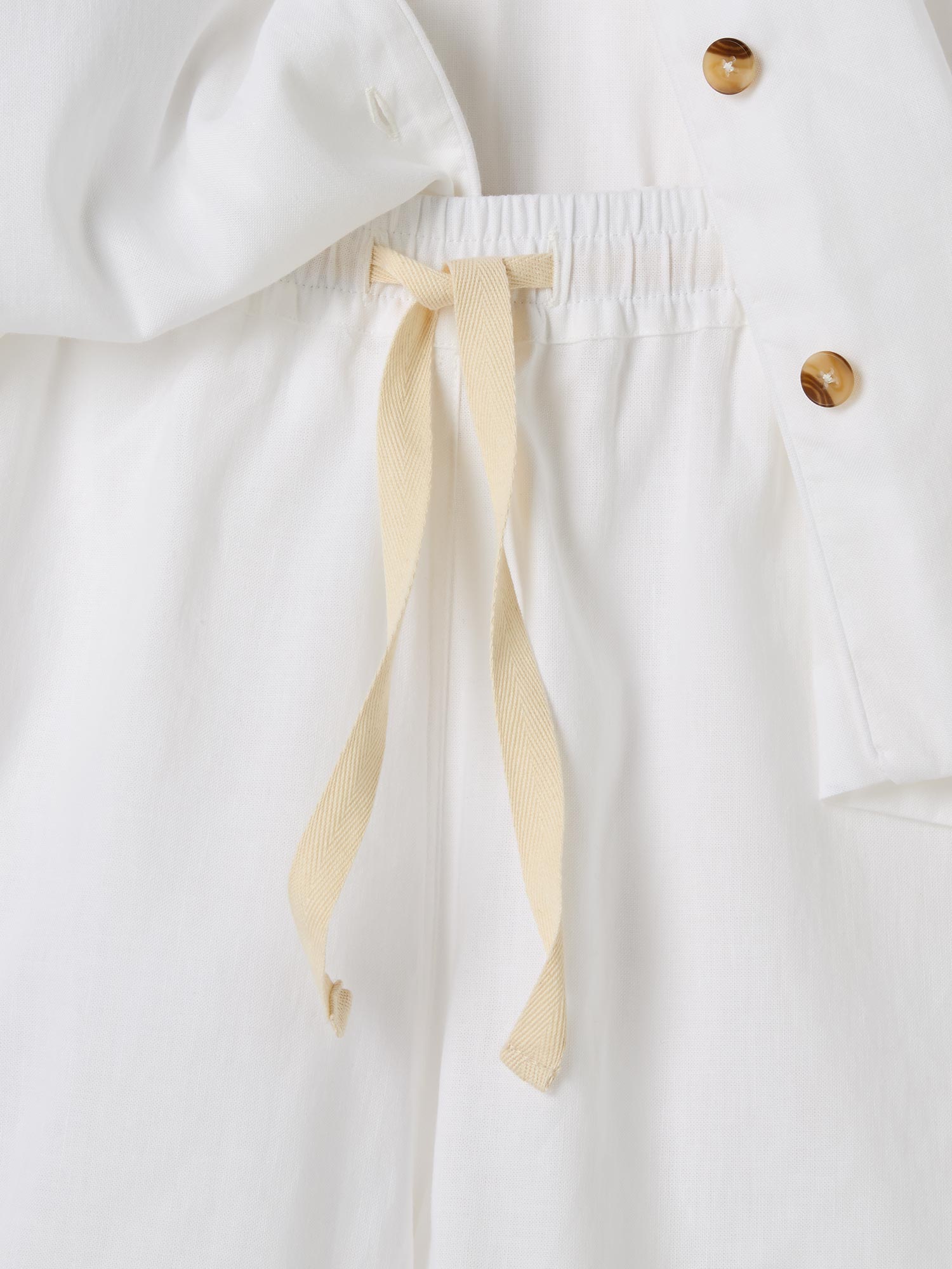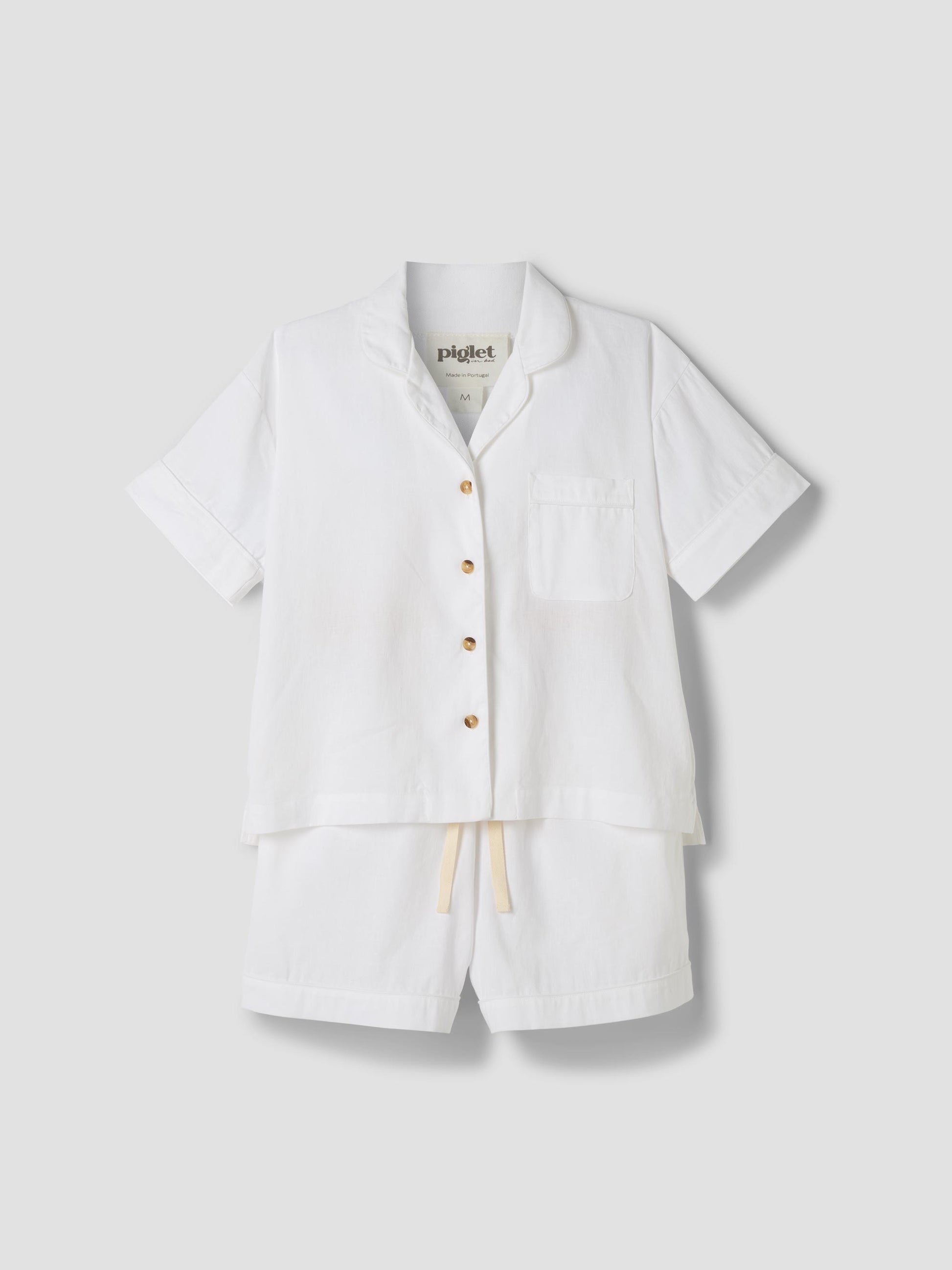 Made for easy, breathable wear, our White linen blend pajama short set will have you waking up feeling refreshed and ready to seize the day. Combining the laid-back look of linen with the gentle softness of cotton in our classic white hue, these pajamas are destined to become your new nighttime favorite.