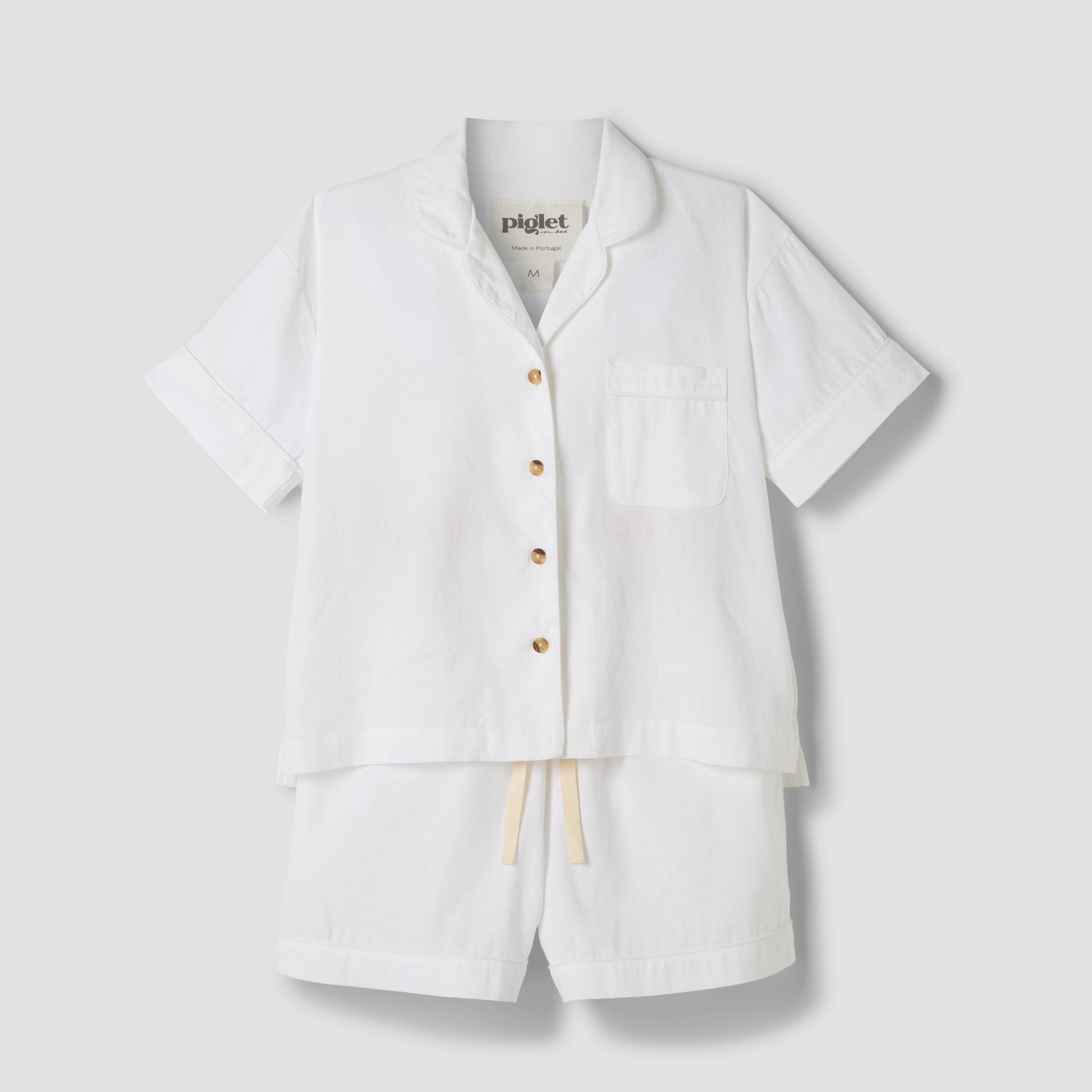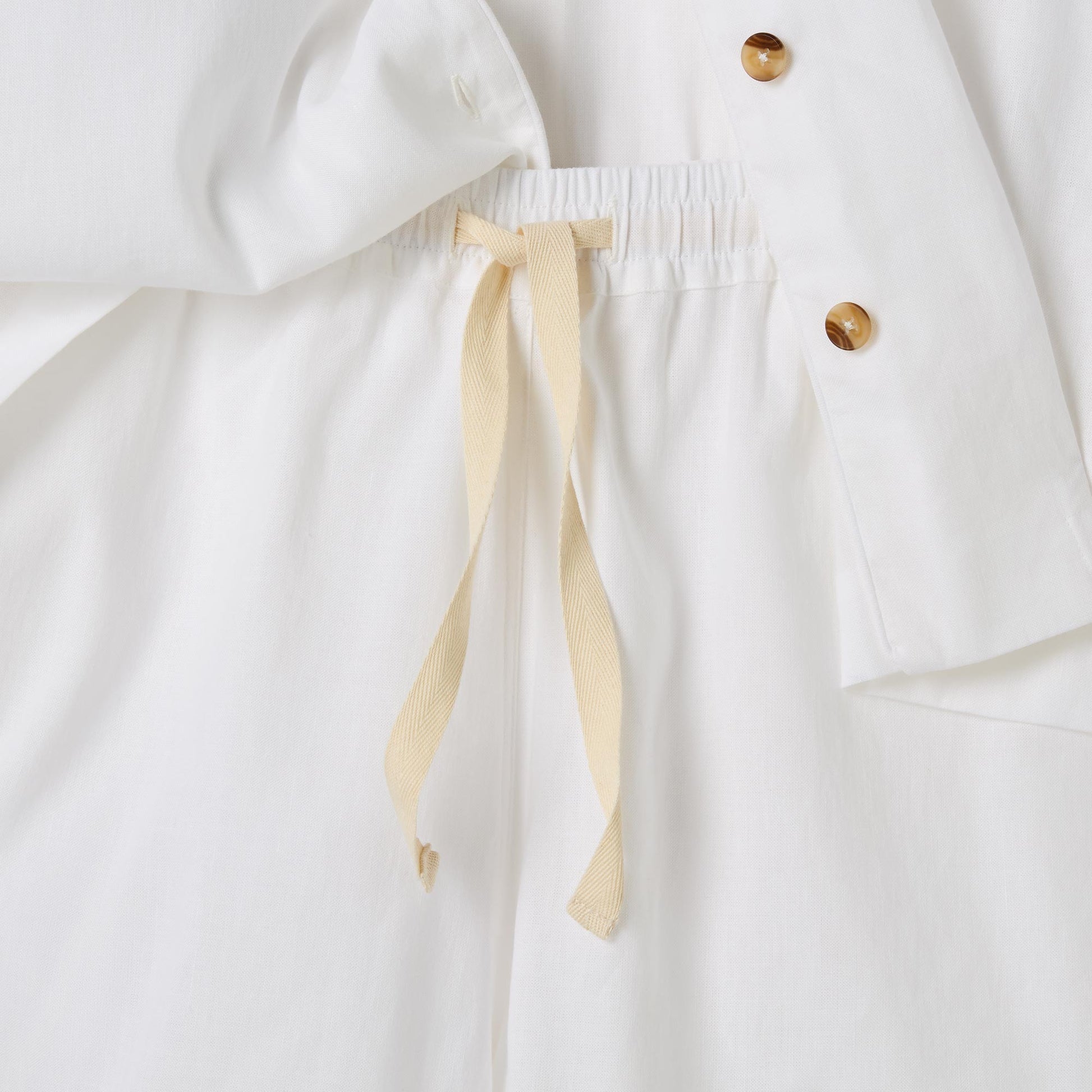 Made for easy, breathable wear, our White linen blend pajama short set will have you waking up feeling refreshed and ready to seize the day. Combining the laid-back look of linen with the gentle softness of cotton in our classic white hue, these pajamas are destined to become your new nighttime favorite.